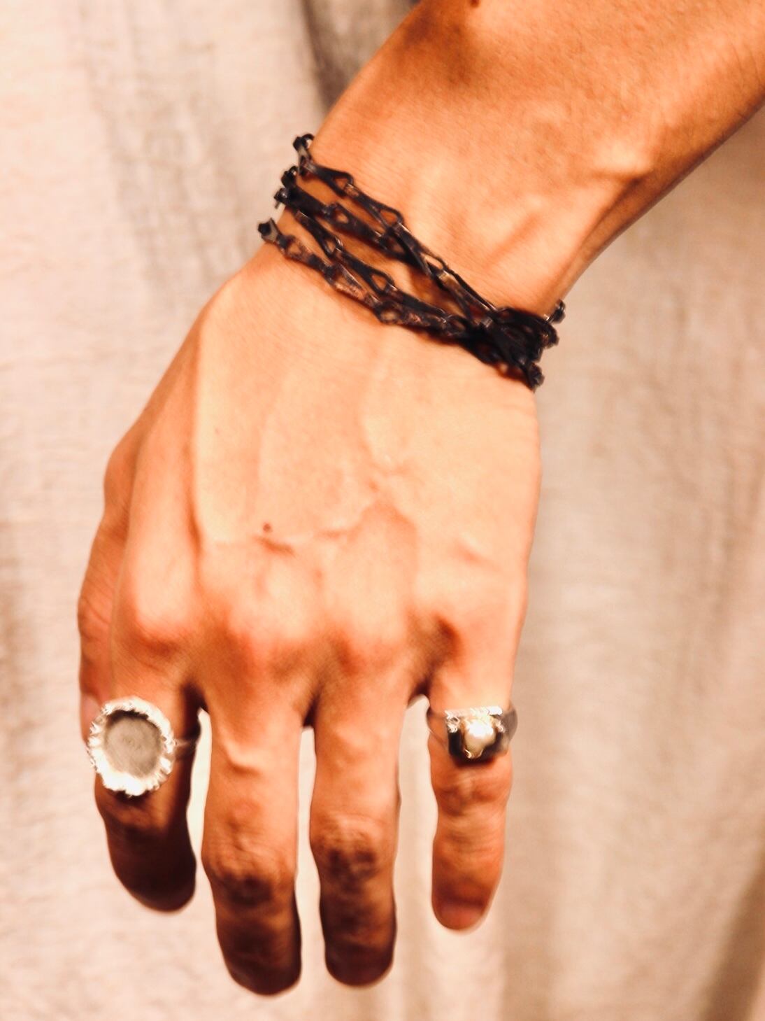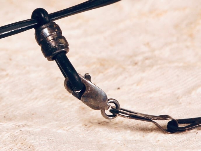 ※真鍮黒染めは蜜蝋コーティングしてありますが、白い服に色移りする可能性があります。