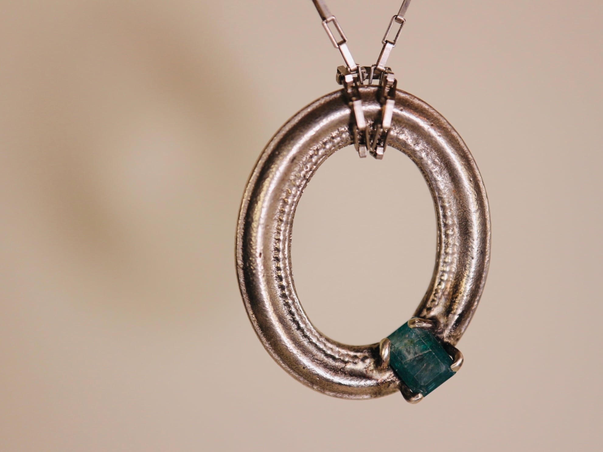 退廃的なテクスチャから光る緑の石