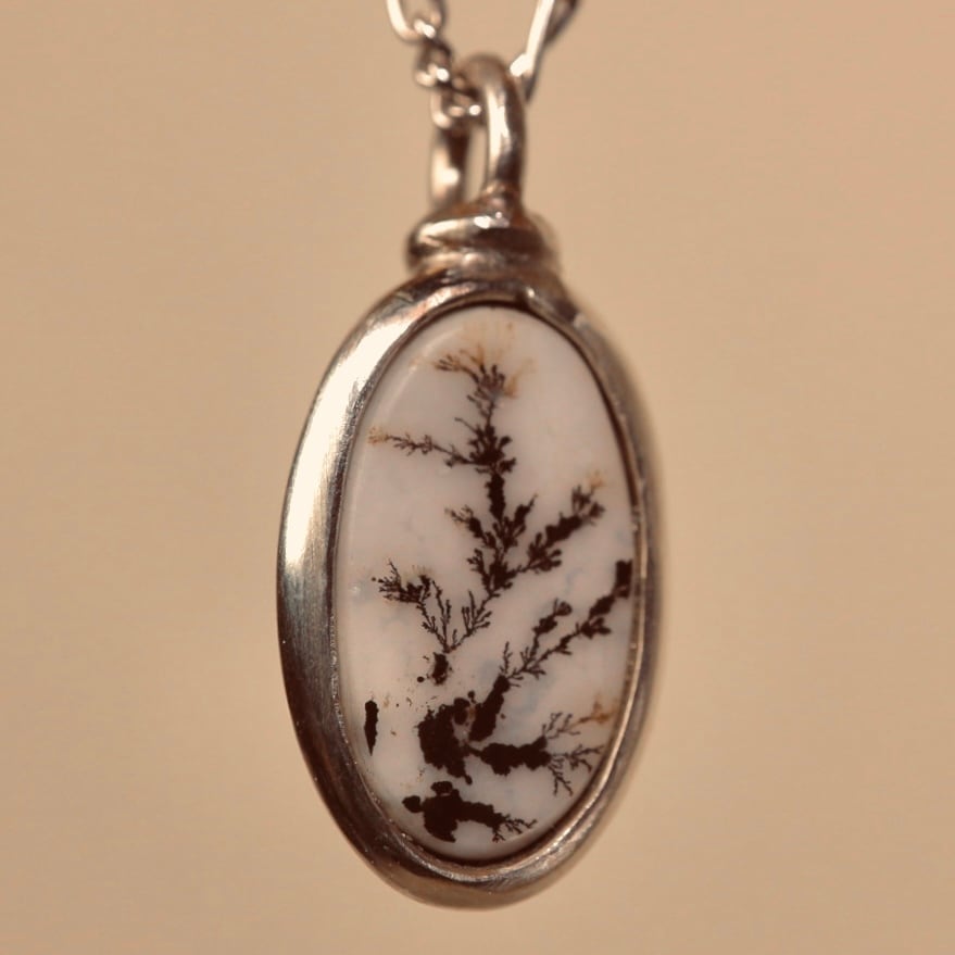 雪山の風景を切り取ったかのようなアゲートのペンダント