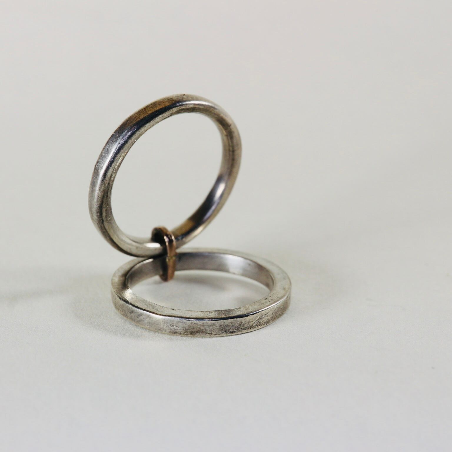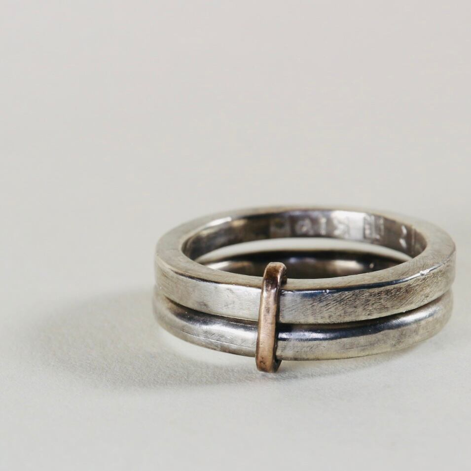 丸と四角、金と銀をミニマルに併せた指環
