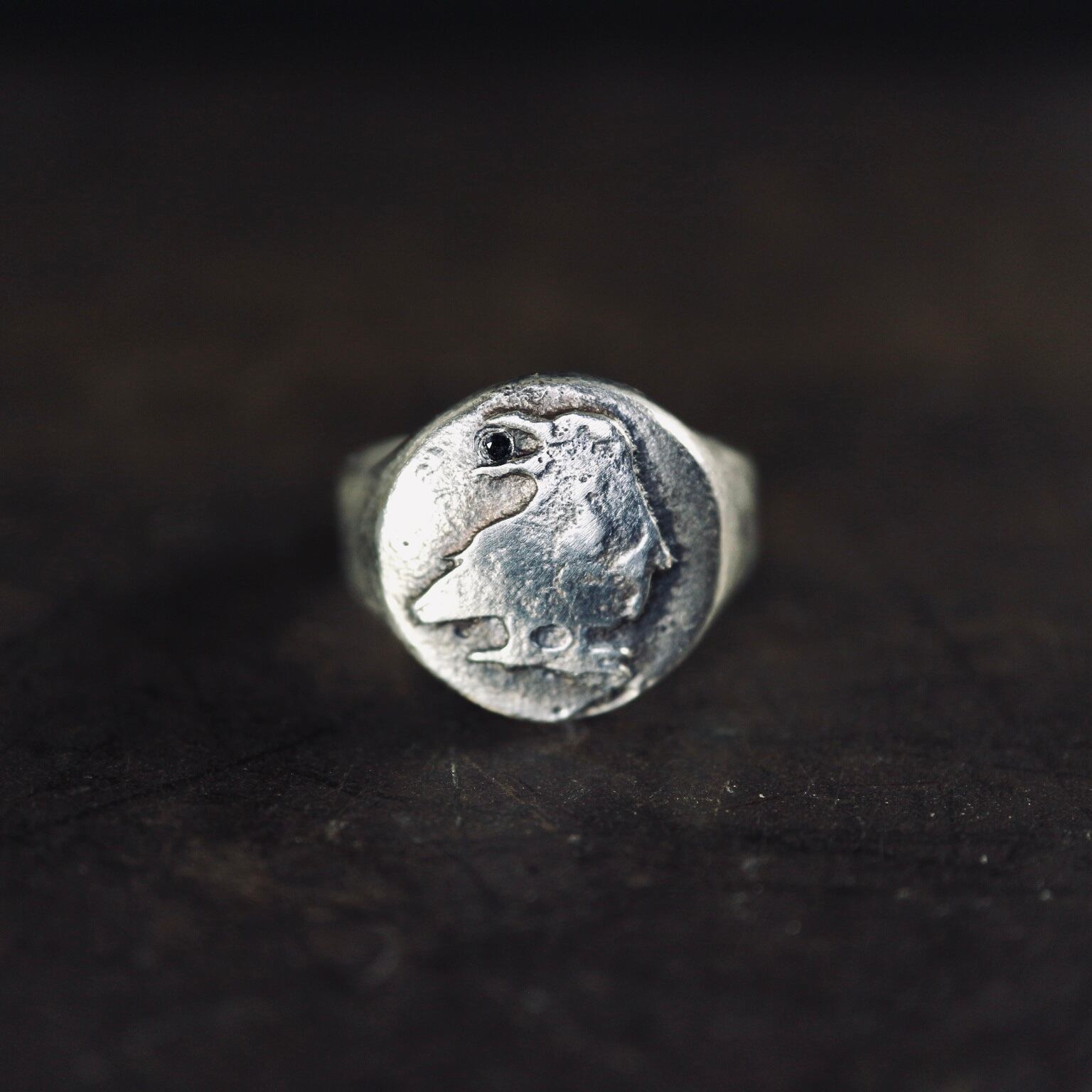 左向き烏のレリーフがあしらわれたシグネットリング